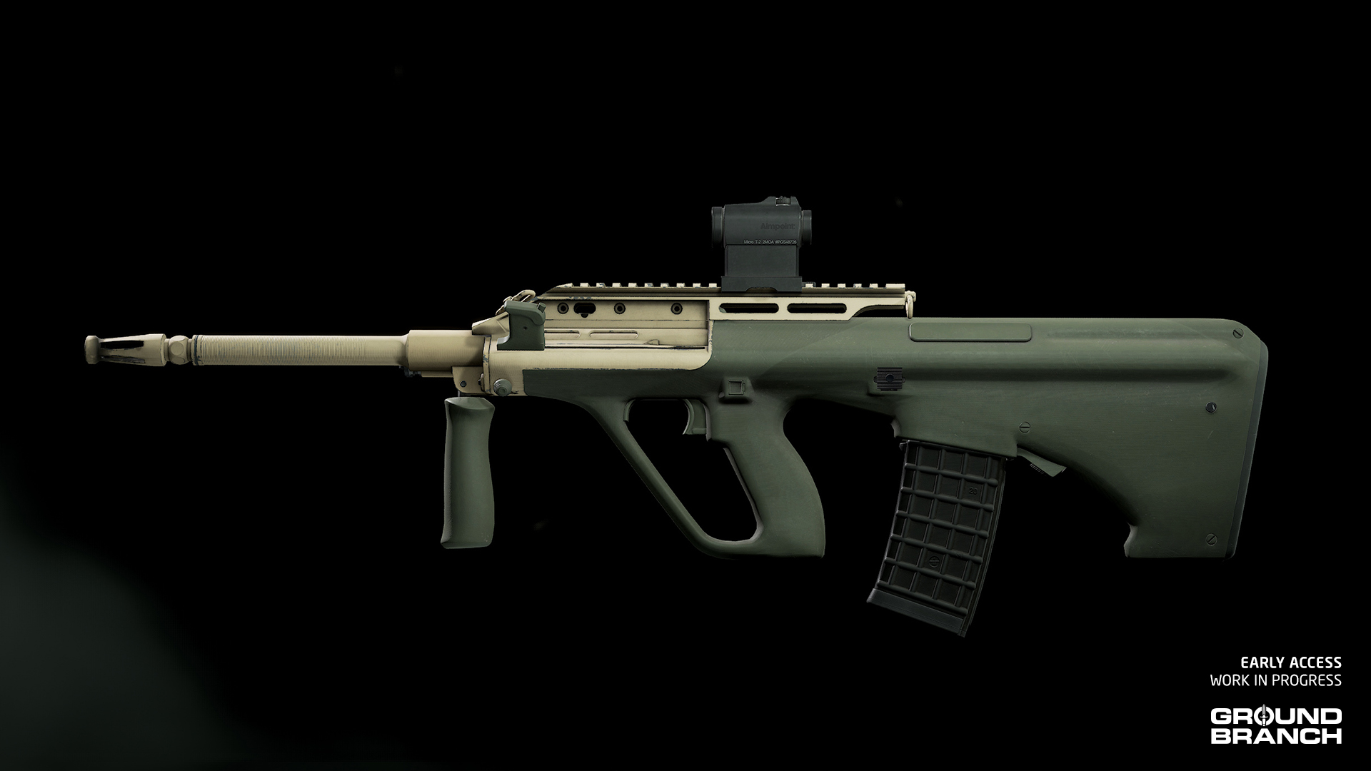 Another AUG variant being added to the armory is the Australian F88 SA2. This is a more modernized version, with a top accessory rail and an interesting dual-tone (tan and green) color scheme.