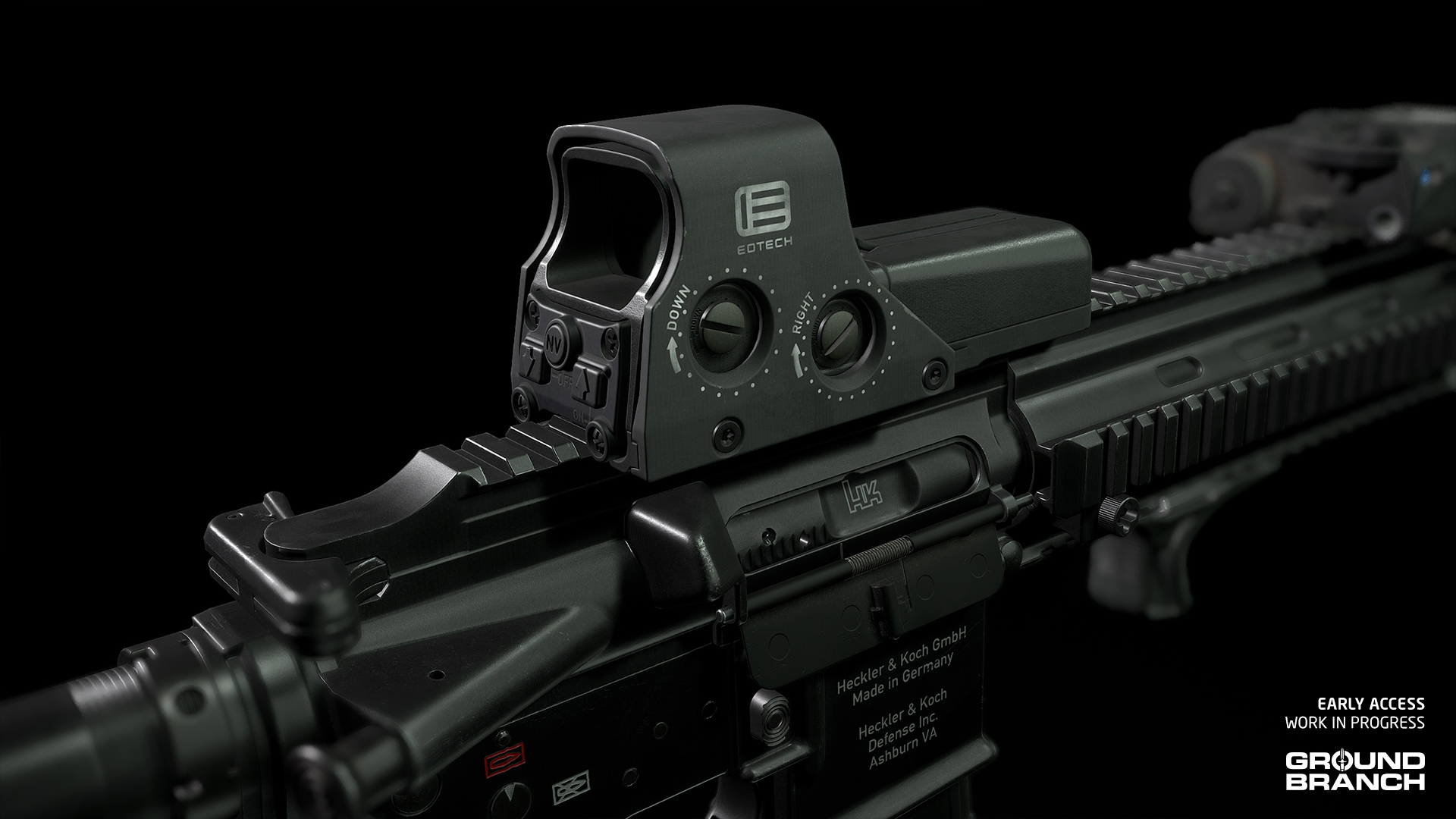 💡 The G36K's handle includes working backup iron sights for very close range engagements, which can be switched to by scrolling your Mouse Wheel while aiming down the sights.